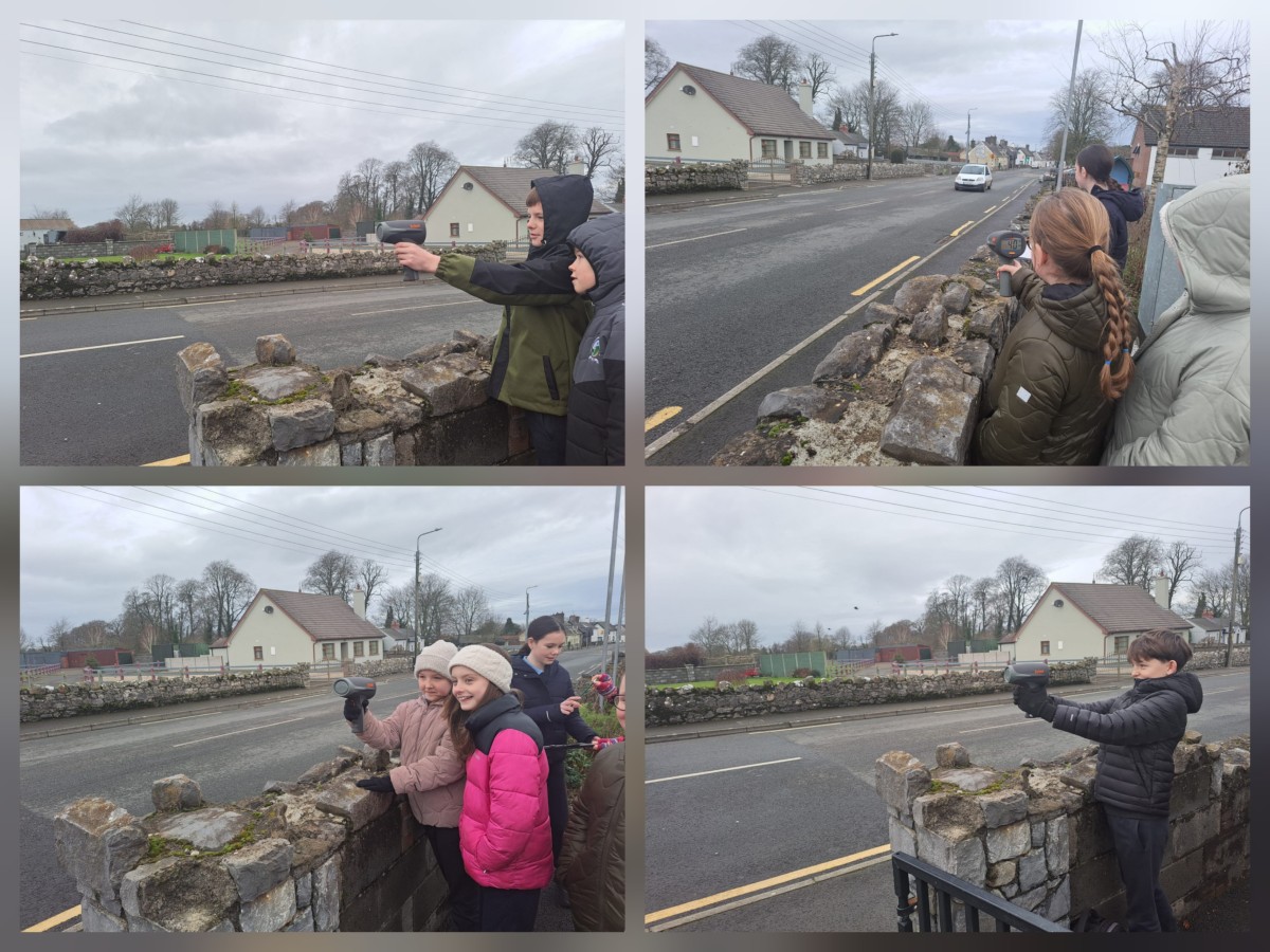 As part of our Green School work on Travel, Michele from An Taisce brought a speed gun to school. Some of our pupils got a chance to measure how fast vehicles were travelling past the school.